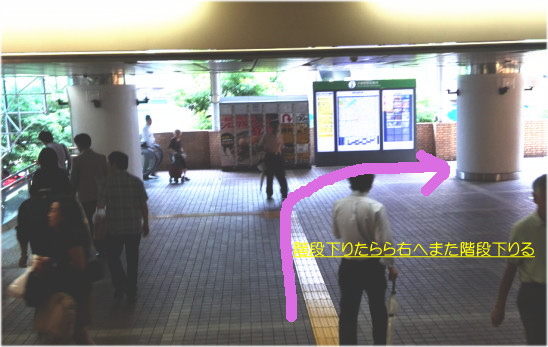 短めの階段あるので降りたら右方向へ曲り、階段下りてください。
